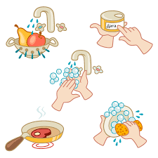 Во время приготовления пищи в домашних условиях необходимо соблюдать следующее: тщательно мыть руки перед началом приготовления пищи и после контакта с сырой продукцией, использовать отдельные разделочные доски и ножи — для «сырого» и «готового», тщательно промывать (с обработкой кипятком) зелень, овощи и фрукты, не готовить заблаговременно (более суток) рубленное мясо, в холодильнике стараться не помещать на одну полку готовые блюда и сырое мясо и рыбу.