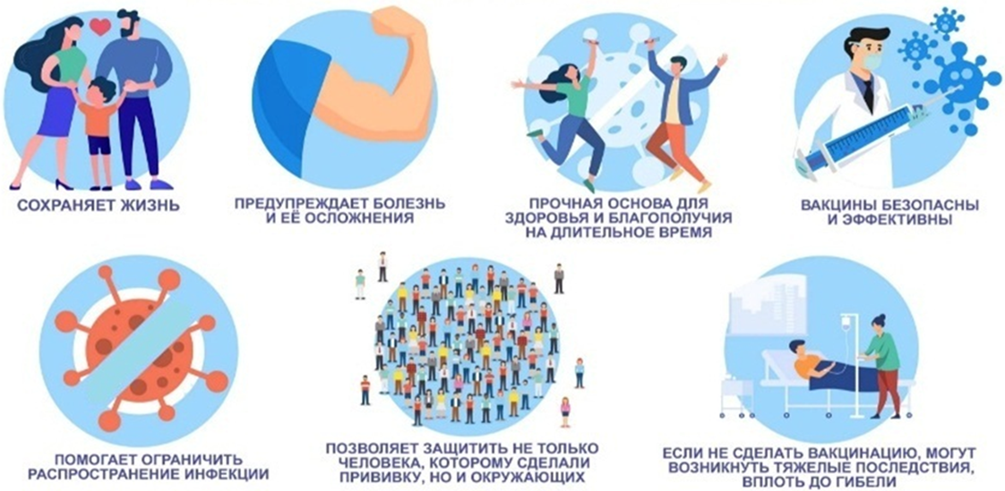 Поддержание эпидблагополучия населения по вакциноуправляемым инфекциям (грипп, COVID-19, вирусный гепатит А и В, туберкулез, дифтерия, коклюш, столбняк, полиомиелит, гемофильная, пневмококковая, менингококковая, инфекции, вызванные вирусом папилломы человека /ВПЧ/, корь, краснуха, эпидемический паротит, ветряная оспа, бешенство, клещевой энцефалит) возможно лишь при своевременном проведении плановых профилактических прививок и прививок, проводимых по эпидпоказаниям, формировании напряженного и полноценного коллективного иммунитета к инфекциям.