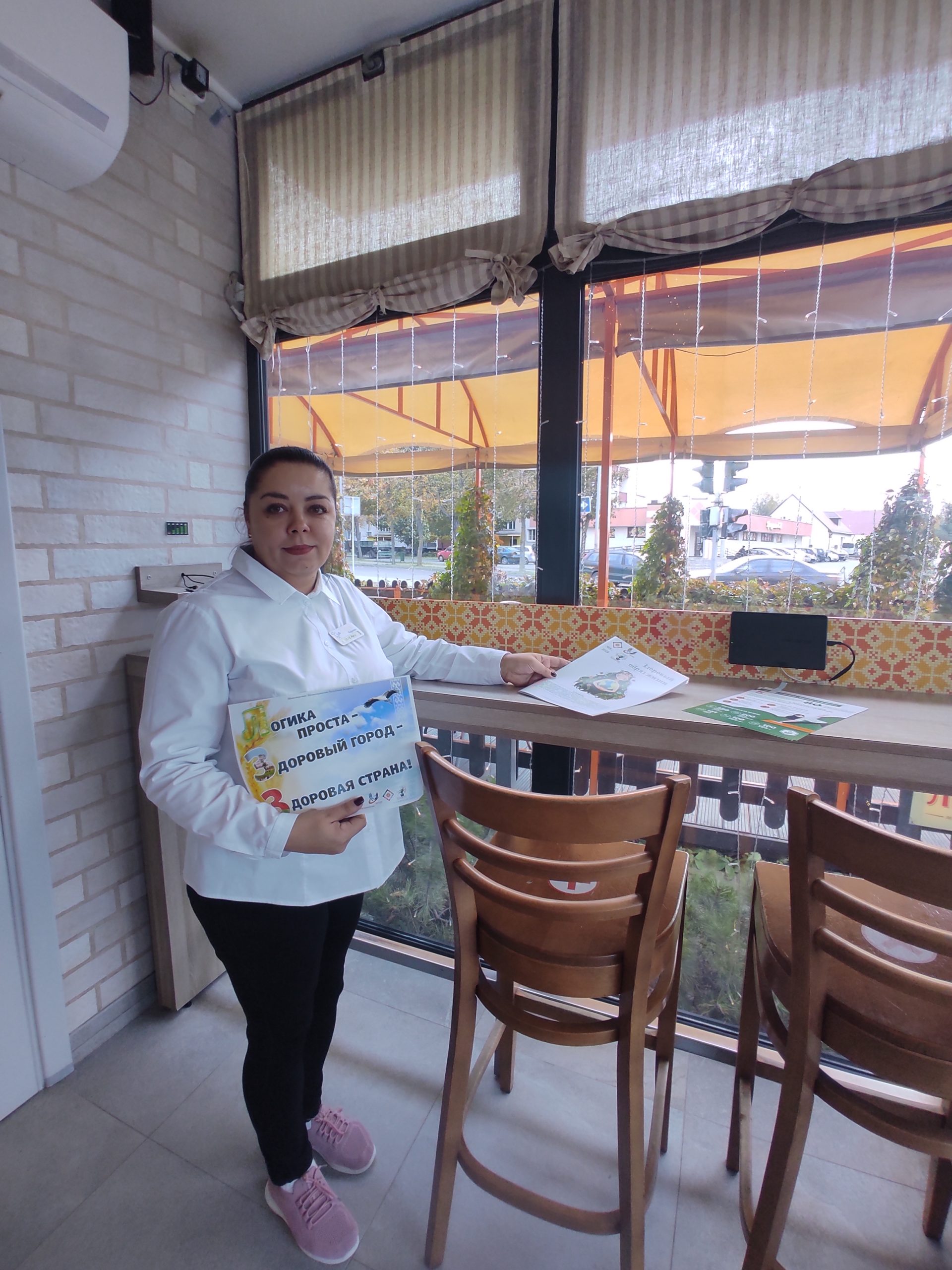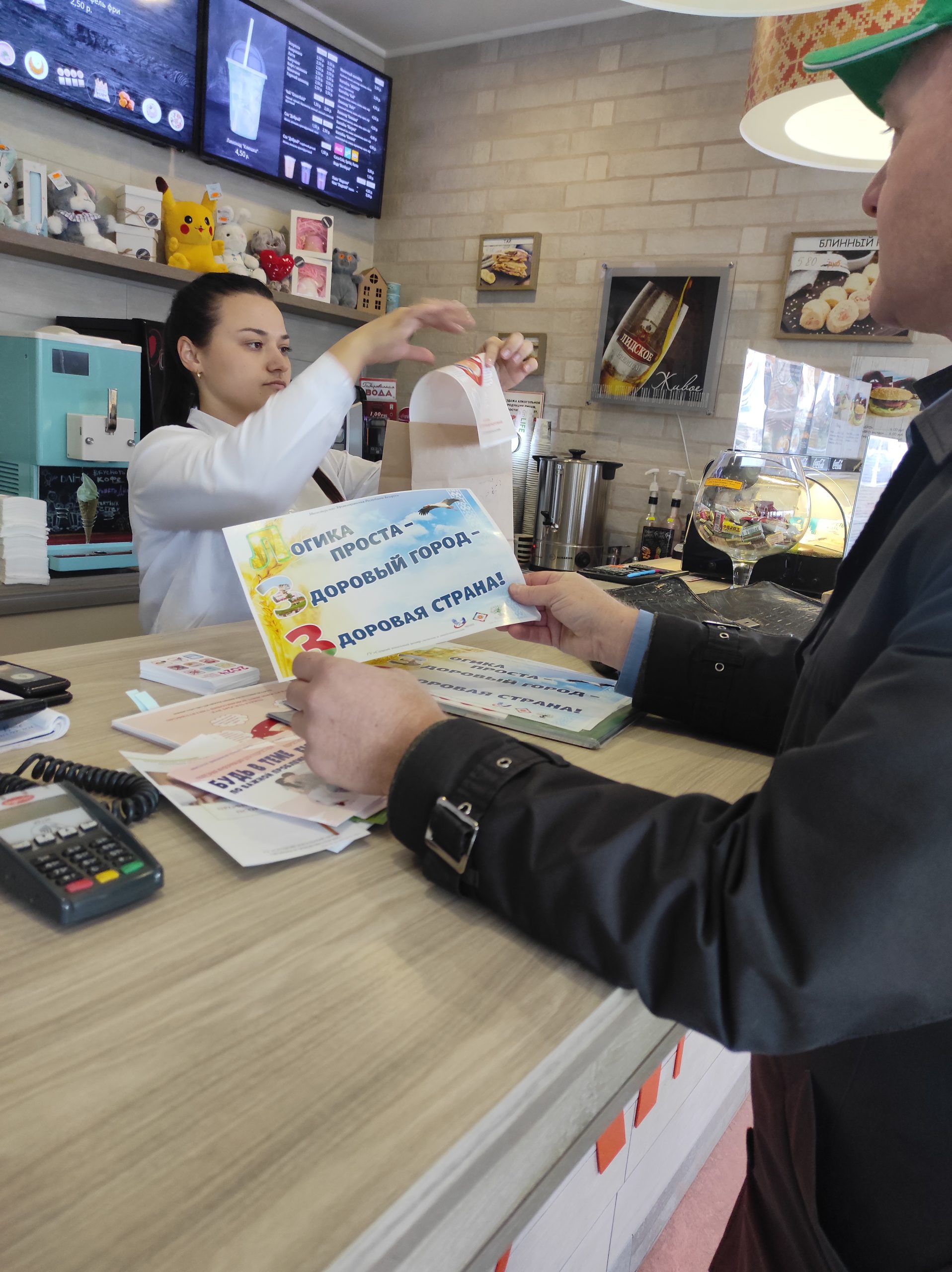 Раздавались Информационно-образовательных материалы (ИОМ), всего 10 наименований — 250 штук (листовки, буклеты). При приеме заказов в кафе, вместе с чеком предлагались ОИМ, и при выдаче заказов на вынос прилагались ОИМ. #Здоровыегородаипоселки#Слуцкздоровыйгород#