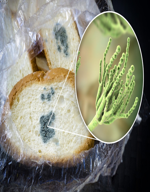Влажность и рыхлая структура продукта играют при этом не последнюю роль. Заплесневелый хлеб следует сразу же утилизировать. Не имеет значения размеры плесневой колонии, выросшей на поверхности хлеба. Из-за своих микроскопических размеров, плесень распространяет свои споры на весь батон, зеленые островки – лишь видимые участки разросшихся колоний. Плесень чаще встречается на хлебобулочных изделиях, а также на овощах, фруктах, зерне, орехах. При этом имеет большое значение не только производство, но и транспортировка и хранение пищевой продукции. При выборе продуктов на развес, обращайте внимание на их внешний вид. Любая пищевая продукция, подвергнутая заражению плесени, не может быть использована в пищу! Она не должна находиться в обороте, на полках магазинов.
